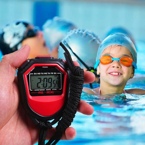Stop-watch numérique de sport – Minuteur de course à pied, étanche et portable | Minuteur polyvalent pour entraîneurs, football, cyclisme, natation, entraînement par intervalle, chronomètre léger avec