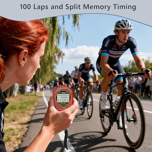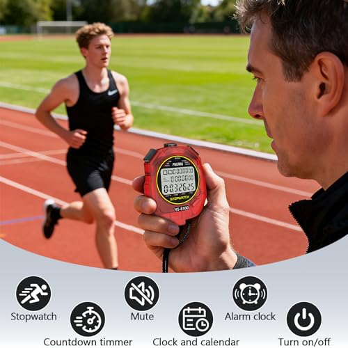 Stopwatch Sports Minuterie 100 laps/splits Digital Stop Watch avec compte à rebours et minuterie d’alarme Calendrier Grand écran pour entraîneurs, course à pied, entraînement sportif, rouge