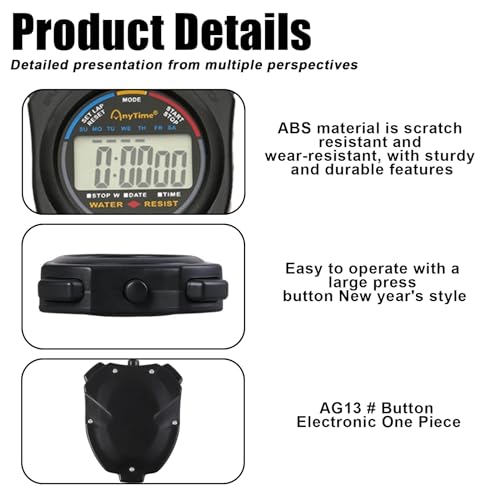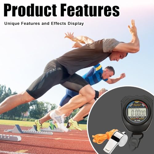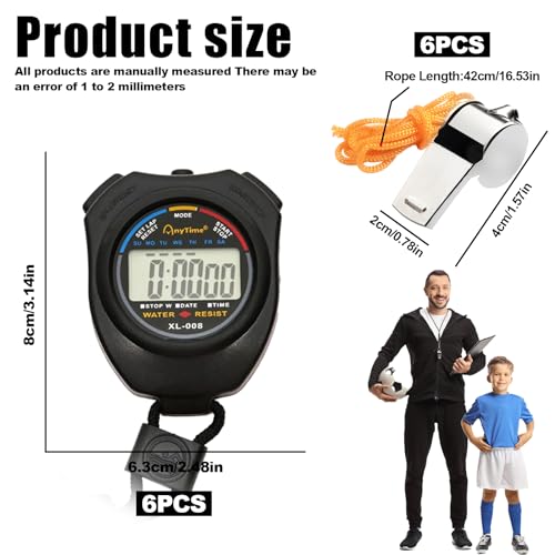 Vegena Chronomètre Numérique, 6 Pièces Multifonction avec Sifflet pour Sport, Course (Noir)