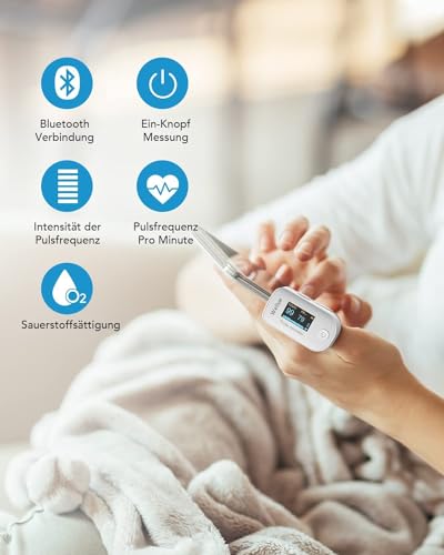 Oxymètre de pouls Bluetooth, moniteur de saturation en oxygène, contrôle de l’oxygène, SP O2 et moniteur de fréquence cardiaque, moniteur de bout des doigts avec application, portable