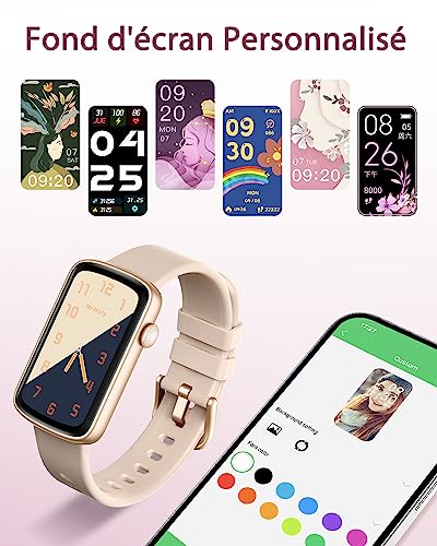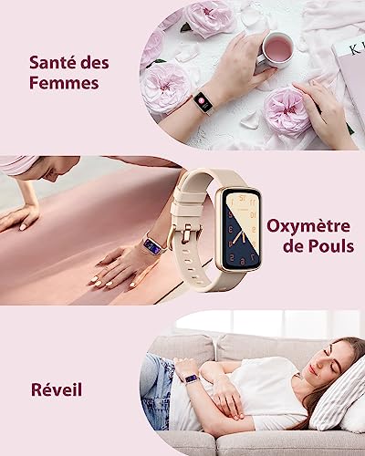 Bracelet Connecté Femme Montre Connectée avec Podometre Cardiofrequencemetre SpO2 Suivi de Cycle Suivi Sommeil Fond d écran Personnalisé 24 Modes Sportifs Notification Waterproof Rose