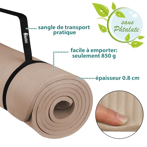 🌸 TOUJOURS LÀ : une sangle pratique facilite le transport * avec un diamètre de 15,5cm, le tapis est compact et pratique à ranger une fois enroulé * même en voyage, avec un poids de seulement 850 grammes, c’est un excellent compagnon