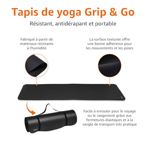 Spécification: Amazon Basics Tapis de yoga, antidérapant, très épais, d’exercice Pilates, 183 x 61 x 1 cm, Noir