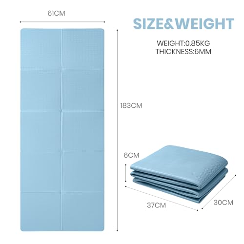 Good Nite Tapis de yoga pliable antidérapant portable tapis de fitness léger tapis de gymnastique Pilates Sport Voyage Tapis d’exercice pour femme homme 183 x 61 x 0,6 cm