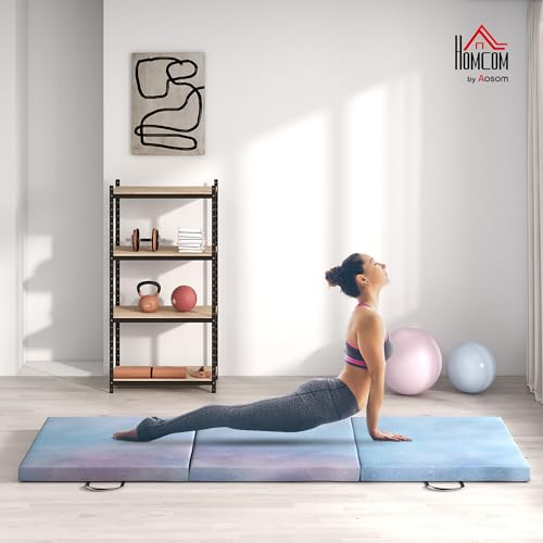 Spécification: HOMCOM Tapis de gymnastique pliable, tapis gymnastique épais, 180 x 60 x 5 cm, avec poignée, tapis de sol pour yoga, sport, fitness, pilates, revêtement synthétique