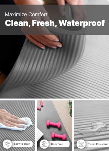 【FACILE À NETTOYER】 Conçu pour les longues séances, ce tapis fitness se nettoie en un clin d’œil avec un chiffon humide. Alliez confort et praticité avec ce tapis sport épais, parfait pour rester en forme chez soi ou en studio.