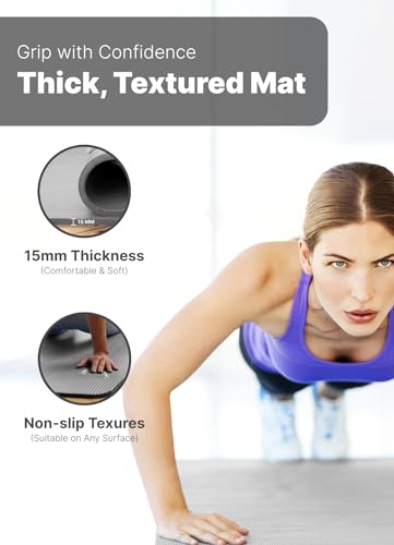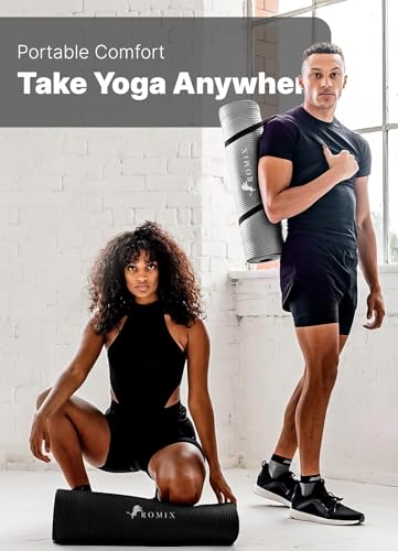 ROMIX Tapis de Yoga Épais 15 mm Antidérapant, Tapis de Sport 183 x 61 cm avec Sac de Transport et Sangle, Tapis de Sol pour Yoga Pilates Fitness Entraînement Maison Gym et Voyage
